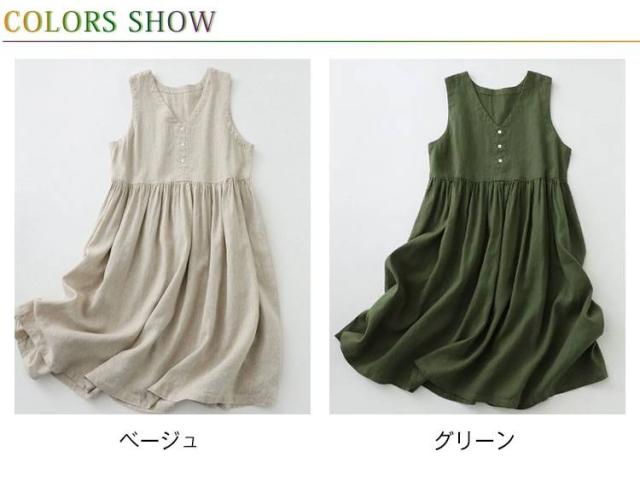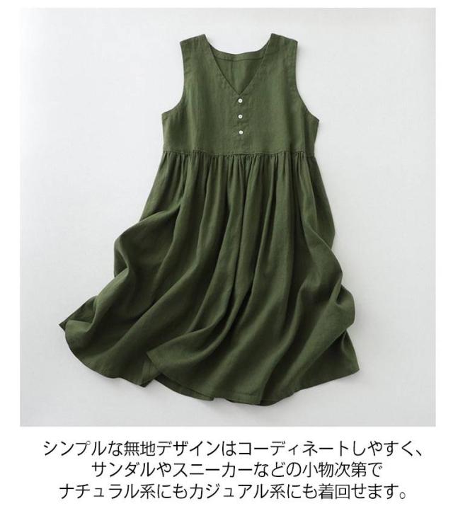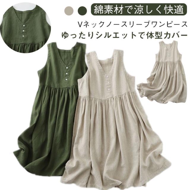 Vネック ノースリーブワンピース ゆったり ワンピース 体型カバー 大きいサイズ 着やせ 夏用 ナチュラルコーデ 無地ワンピース 送料無料