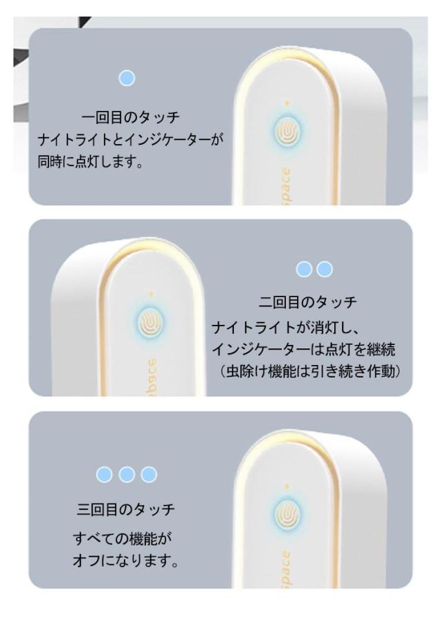 | 超音波式害虫駆除器 360°全方位保護 安全 電池は不要、コンセントに差し込むだけですぐ使える 害虫にだけ効く超音波で、 内分泌と生理学機能を乱し、 害虫を寄せつけない効果を発揮! 超音波は人体やほかの動物には無害なので、安心です。 柔らかな灯りで目を刺激しないので、 常夜灯としてもぴったり。 | |
