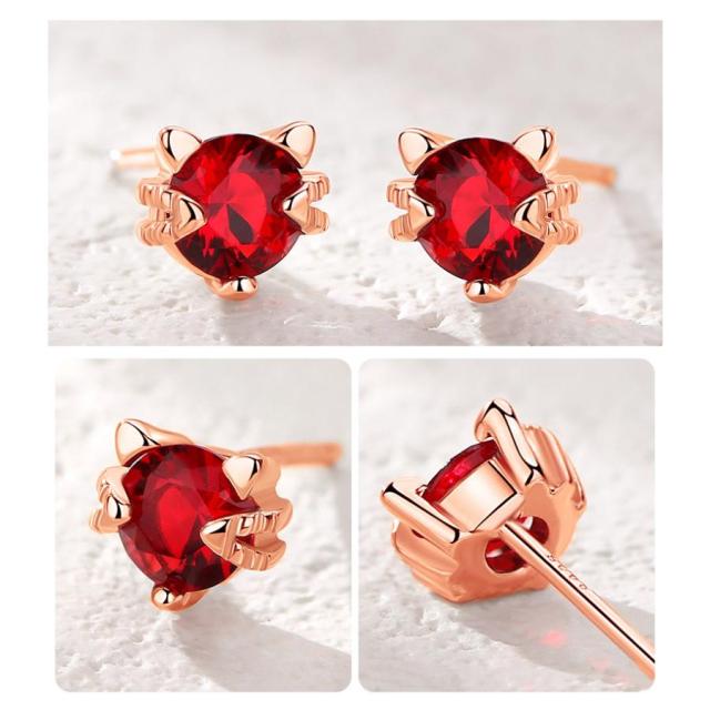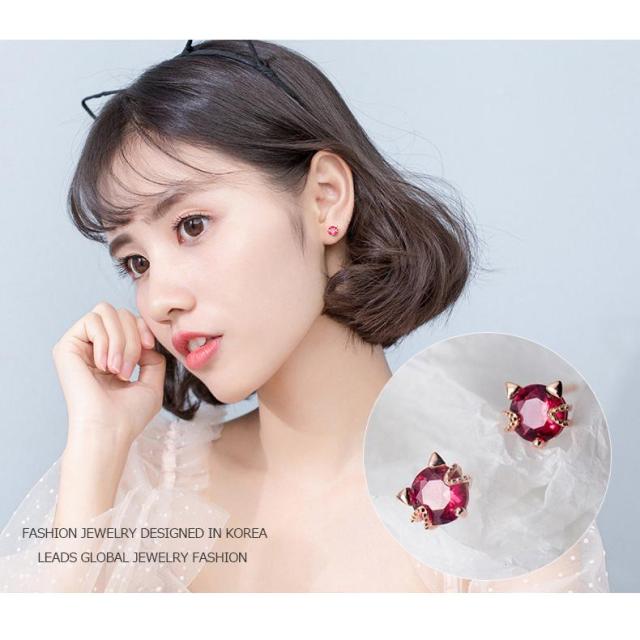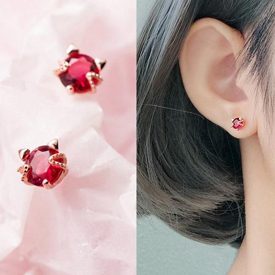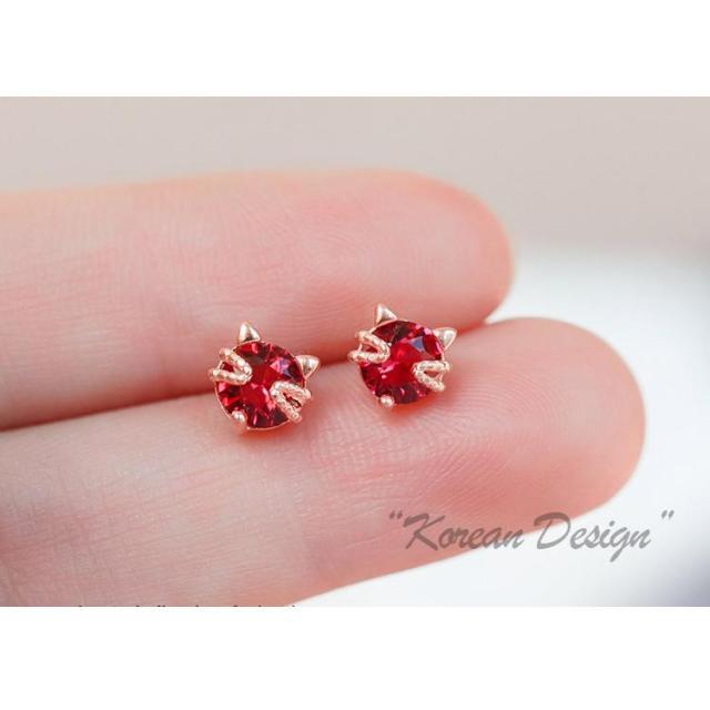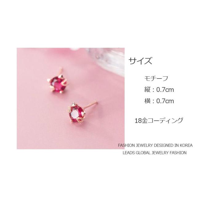 ピアス ガーネット 誕生石 猫顔 猫耳 レディース 18金仕上げ アレルギー対応 韓国ファッション ポイント消化 誕生日 母の日 プレゼント