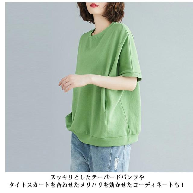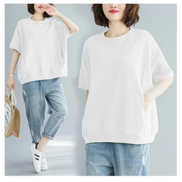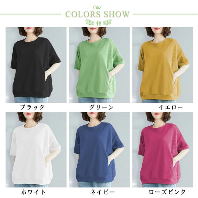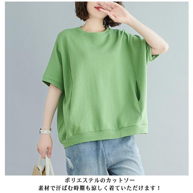 半袖 レディース おしゃれ 春 夏 トレーナー おしゃれ 大きいサイズ レディース トップス 5分丈 ビッグシルエット ロンt 大きめ 半袖tシャツ カジュアル プルオーバー シンプル Tシャツ ラウンドネック カットソー 無地 ゆったり 体型カバー 夏服 tシャツ