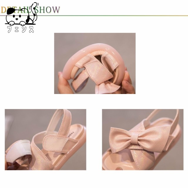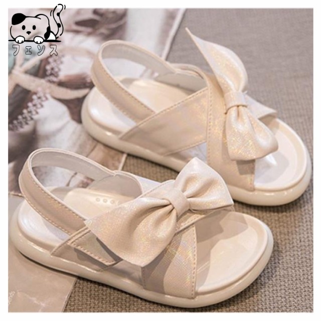 | 歩きやすさ抜群のガールズサンダル。 リボンが可愛く、マジックテープで着脱しやすい。 キラキラストラップは可愛さ抜群!これ一足で夏らしさアップ! やわらかいゴム素材で滑り止め加工、安心に着用できます。 裸足でも靴下と合わせても可愛く、プレゼントにもおすすめ。 | |