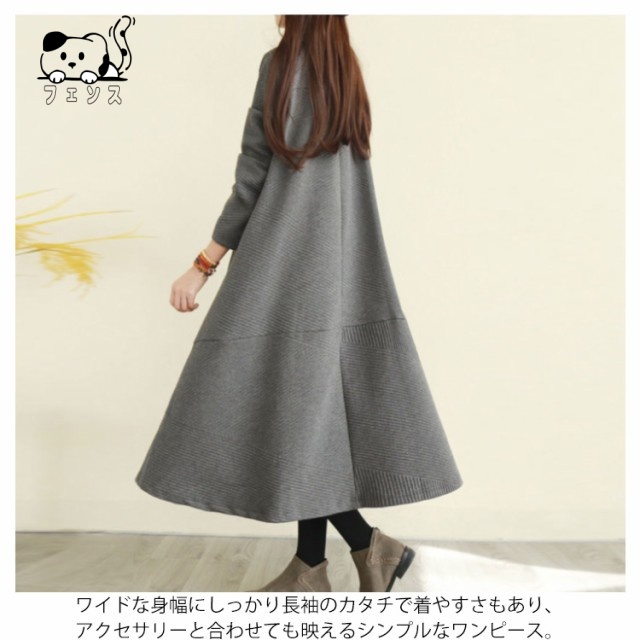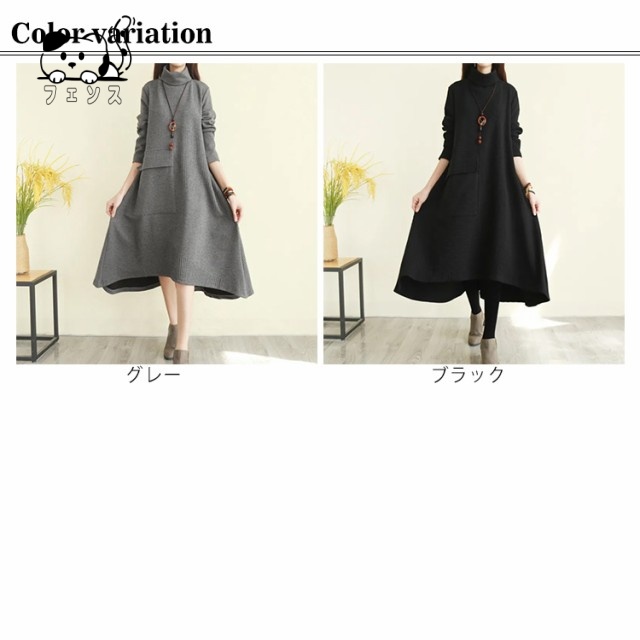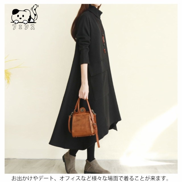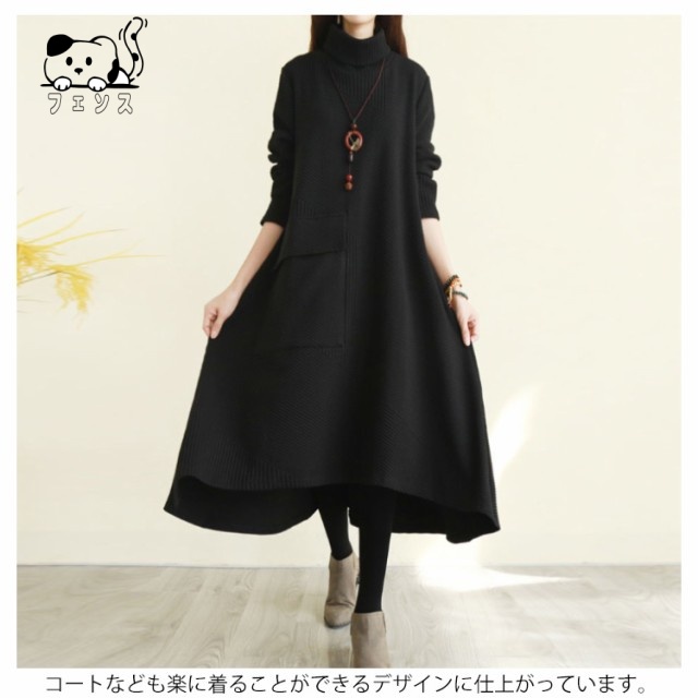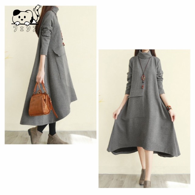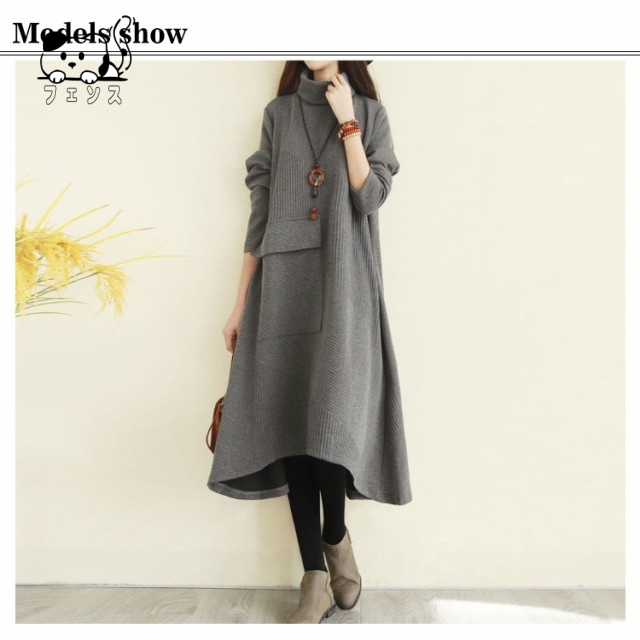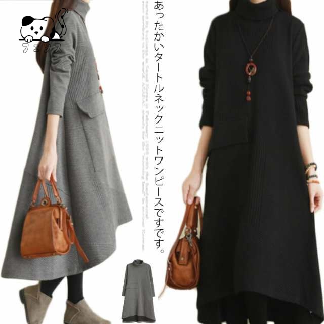 ワンピース 秋冬 長袖 ニット ワンピ レディース 大きいサイズ ロングワンピース タートルネック Aライン 秋 厚手 ビッグシルエット 体型カバー 秋物 大人 シンプル 無地 ポケット付き ゆったり 送料無料 大人 上品 カジュアル