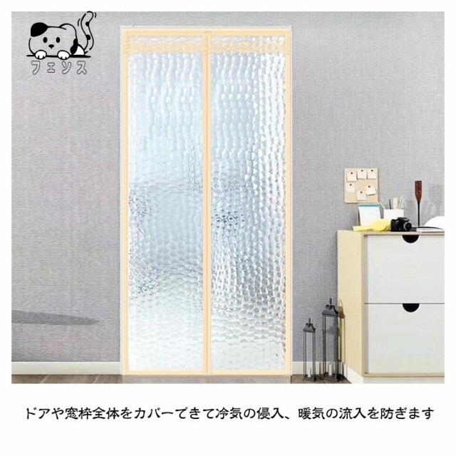 - 部屋の出入り口用に購入しました。軽い素材なので設置が簡単で、女性一人でも問題なく取り付けられました。冷暖房効率が少し良くなったように感じます。静音性についても、開閉時の音はほとんど気になりません。透明...