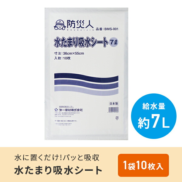 防災人 水たまり吸水シート 7L 10枚入り 日本製 BMS-001 吸水シート 雨漏り 水漏れ 浸水 水抜き 水たまり キッチン トイレ 防災 暴風雨対策 備蓄 備え 防災用品 防災グッズ 非常用 軽量 コンパクト 第一衛材 【送料無料】