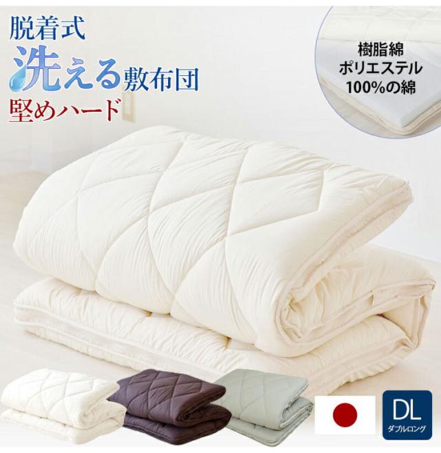 洗える敷布団 日本製 脱着式 3層敷布団 厚さ10cm ダブル ダブルロング 洗濯可能 着脱式 固綿入り 洗濯機OK 国産 厚みがある 清潔 体圧分散 固綿 ポリエステル綿(代引不可)【送料無料】