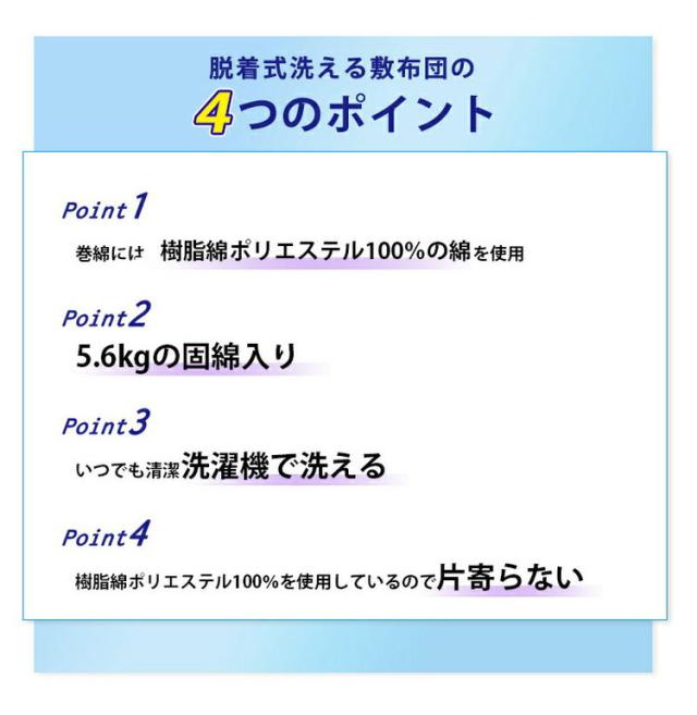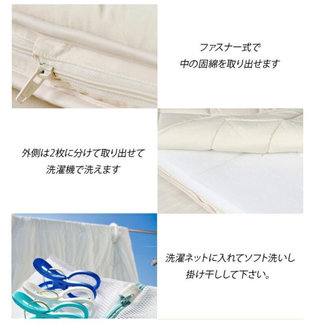 ※ファスナー式で中の固綿を取り出せ、外側は2枚に分かれて洗濯機で洗える(洗濯ネットに入れソフト洗い、掛け干し)