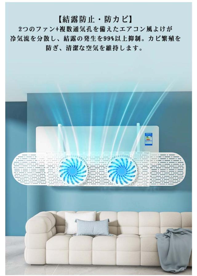 エアコン風よけカバー 取り付け簡単 冷房 直撃風防止 風除けカバー 伸縮可能 ファン付き エアコン風向き調整 長さ調整可 風向き調整 角度調整 空気循環 透明 暖房 軽量 結露防止 省エネ 節電