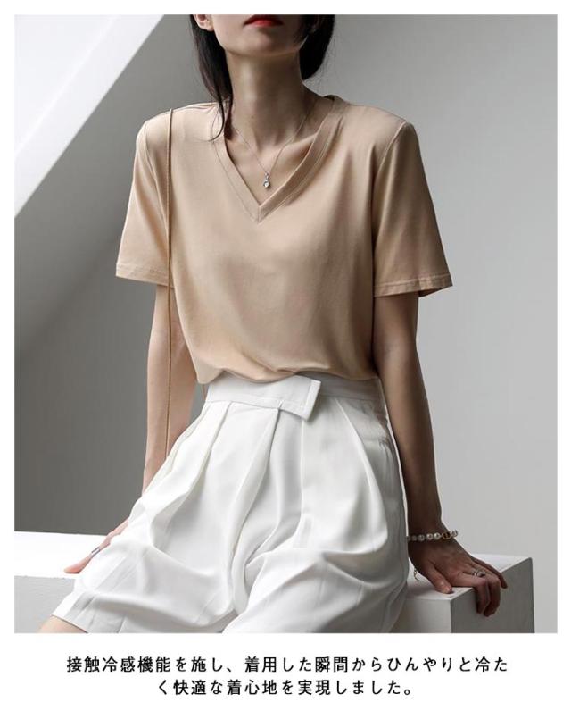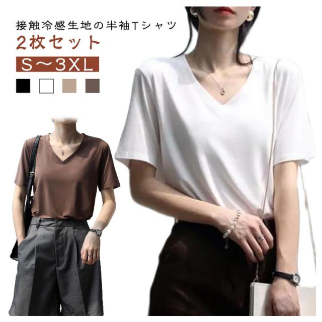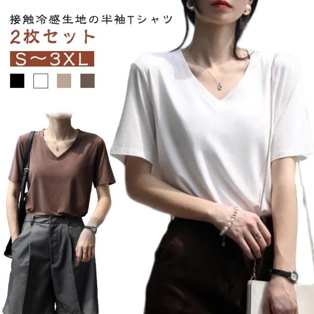 カットソー 速乾 大きいサイズ 冷感Tシャツ 半袖Tシャツ 薄手 レディース Tシャツ 吸水 涼しい 2枚セット トップス ヨガウェア 部屋着 夏 大人 Vネック おしゃれ 体型カバー シンプル 無地 接触冷感 カジュアル 春 夏 夏服 春夏