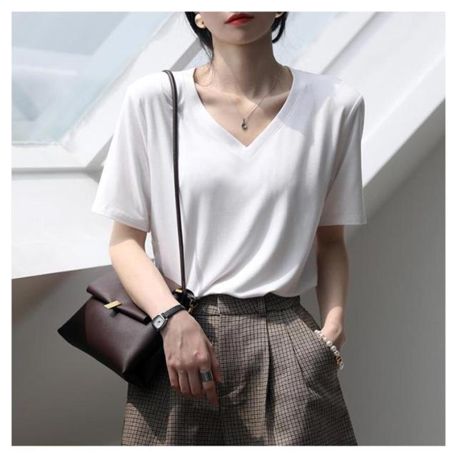 | 接触冷感生地の半袖Tシャツ 2枚セット S〜3XL 接触冷感機能を施し、着用した瞬間からひんやりと冷たく快適な着心地を実現しました。 デコルテを美しく見せるVネックラインが、女性らしさを引き立てます。 普段使いはもちろんのことルームウェアとしてもオススメです。 | |