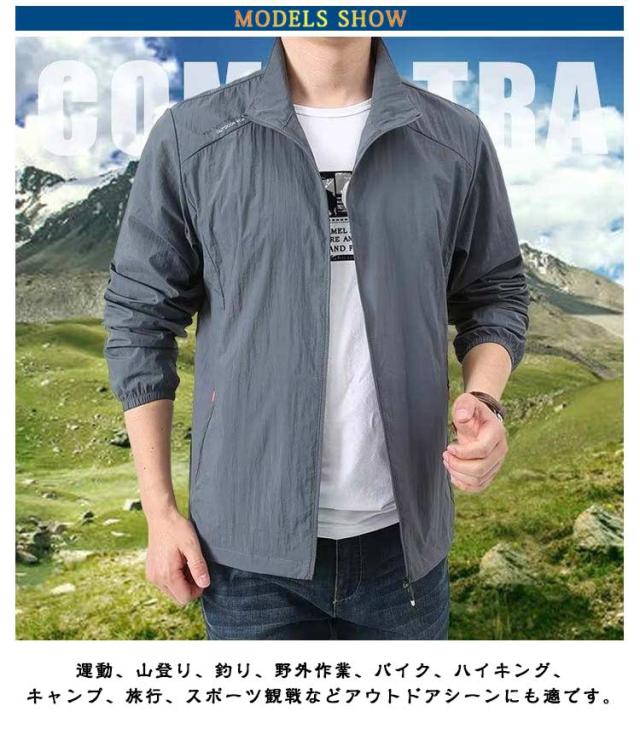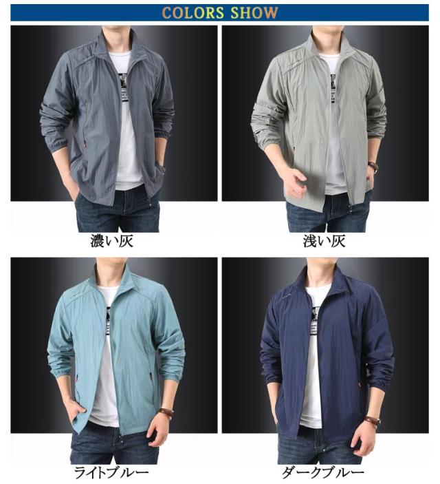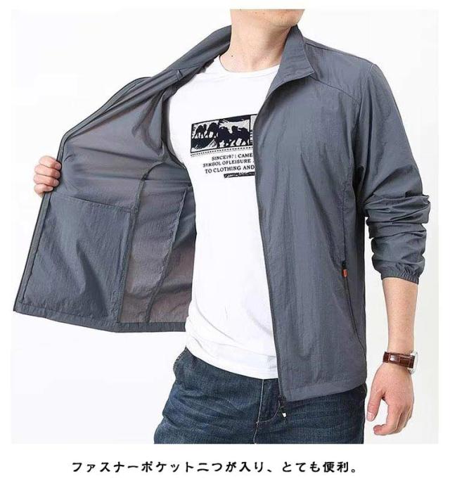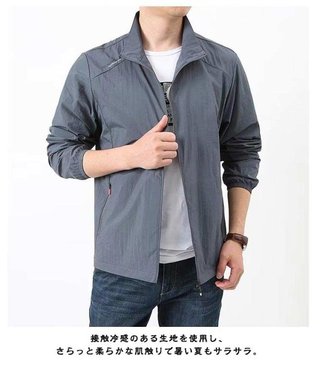 ひんやり コート 長袖 メンズ 立ち襟 ラッシュパーカー 薄手 涼しい 夏用 吸汗 UVカット フードなし 速乾 カジュアル ジャケット 紫外線対策 日焼け防止 冷房対策 ジャンパー 無地 軽量 通気性 ブルゾン 大きいサイズ 接触冷感 アウトドア スポーツ用