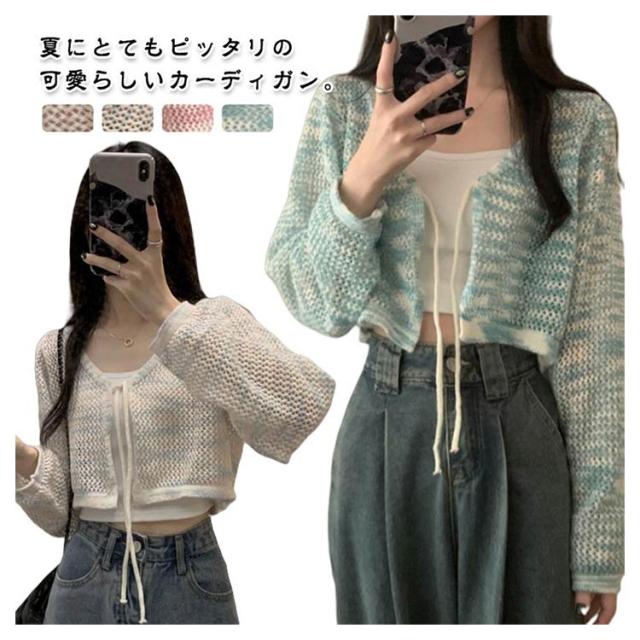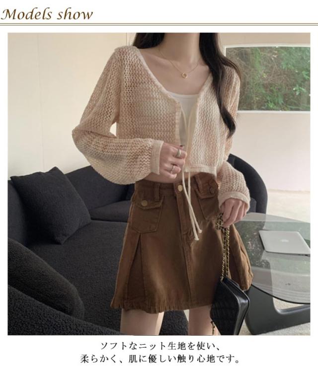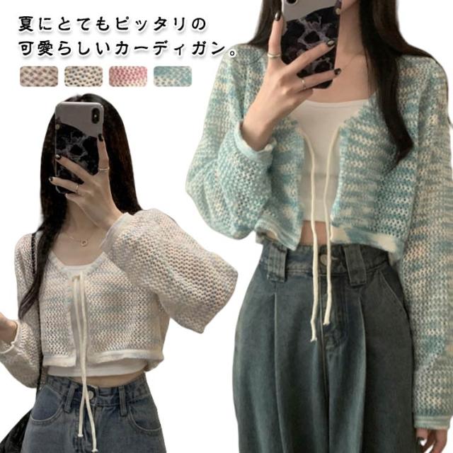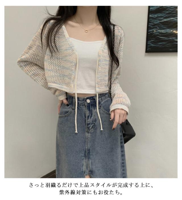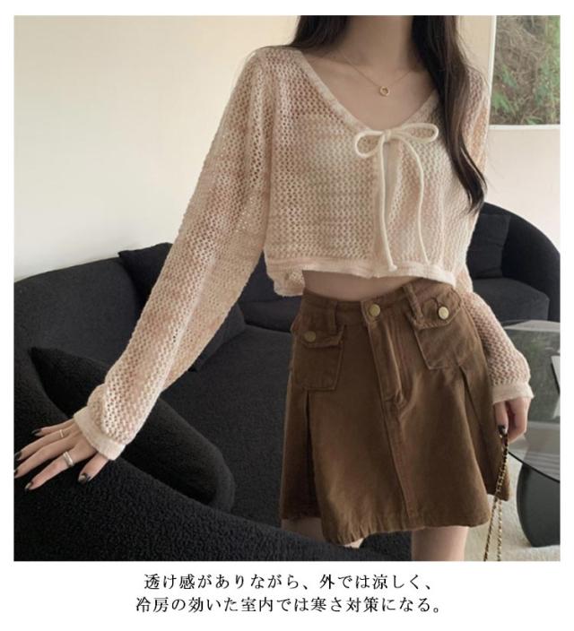 レディース サマーカーディガン 透け彫り ショート丈 夏 透ける ニットカーディガン サマーニット vネック 冷房対策 薄手 クロップド丈 uvカット サマーカーディガン ゆったり カジュアル おしゃれ オフィス