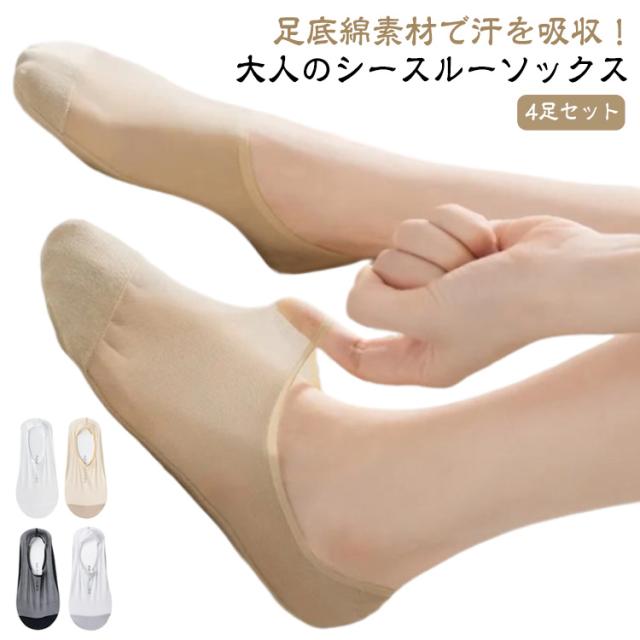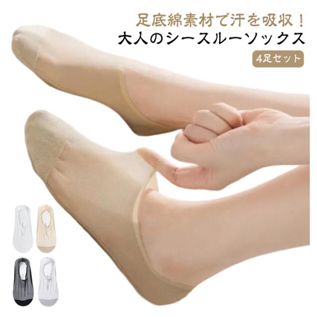 通気性 シアーソックス シースルーソックス くつ下 アンクル シースルー 4足セット シアー靴下 パンプス レディース 素足感覚 ソックス 冷感 くるぶし ソックス 夏用 滑り止め 脱げない 蒸れない シースルーソックス 速乾 抗菌 防臭 無地 透け サンダル 靴下 肌色 白 黒