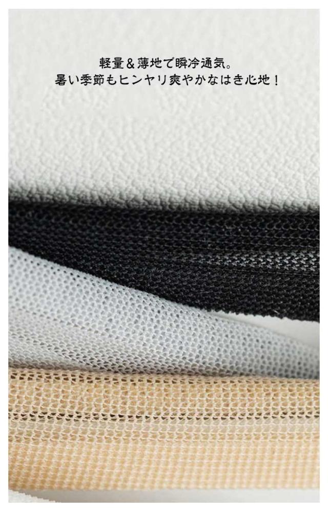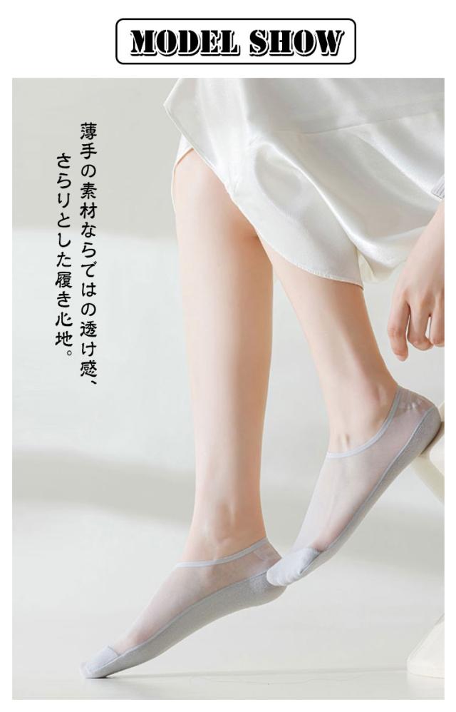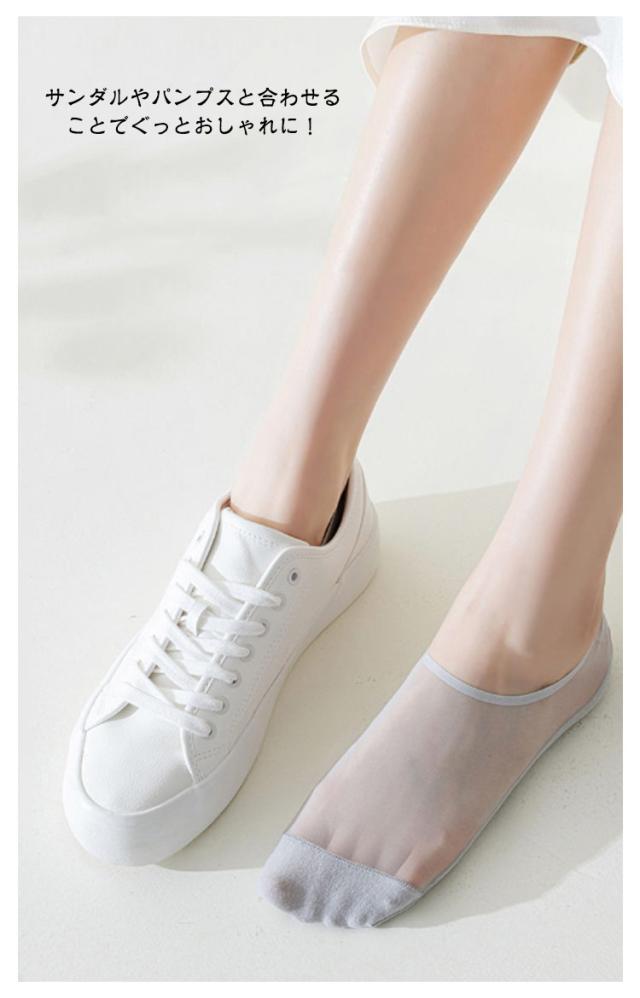| 足底綿素材で汗を吸収!大人のシースルーソックス【4足セット】 薄手の素材ならではの透け感、さらりとした履き心地。 透け感のあるデザインは夏でも涼しく履いていただけます。 本体はナイロン素材ですが、足底部分を綿素材にすることで、汗を吸収して快適な履き心地を実現しています。 サンダルやパンプスと合わせることでぐっとおしゃれに! ソフトで軽いシースルー素材が足を包み込むから、ずっと快適でいられる。 伸縮性も良く、ソフトな肌触りの履き心地・フィット感。 軽量&薄地で瞬冷通気。暑い季節もヒンヤリ爽やかなはき心地! | |