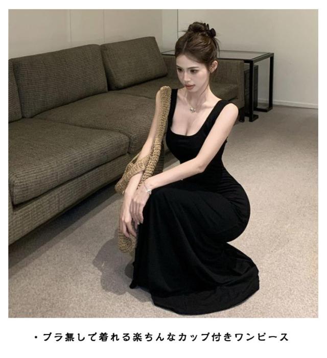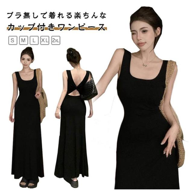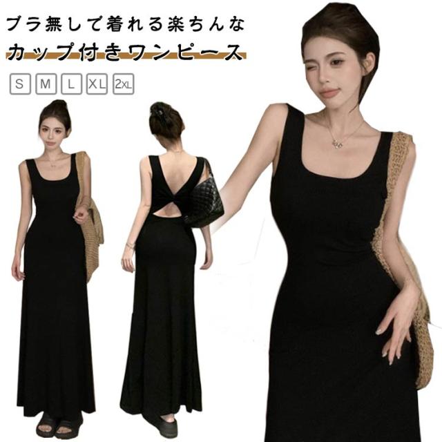 カップ付き レディース ワンピース カップ付き 胸パッド インナー バックレス レディース 無地 マキシ丈 ワンピ ワンピース ゆったり ブラキャミ 着痩せ Aライン ブラトップ 部屋着 ルームウェア マキシワンピース ブラック