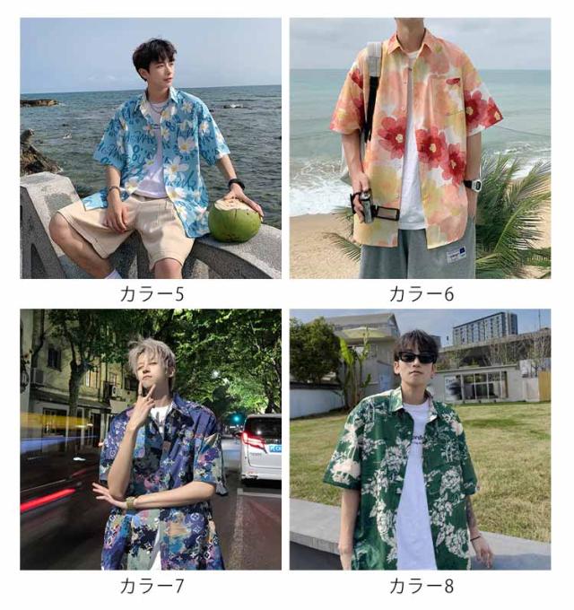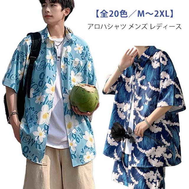 全20色 オープンカラー アロハシャツ 半袖シャツ カジュアルシャツ 花柄 メンズ トップス 薄手 ハワイアン柄 開襟シャツ アロハシャツ 海 ユニセックス サーフ系 全20色 ビーチ ペアルック