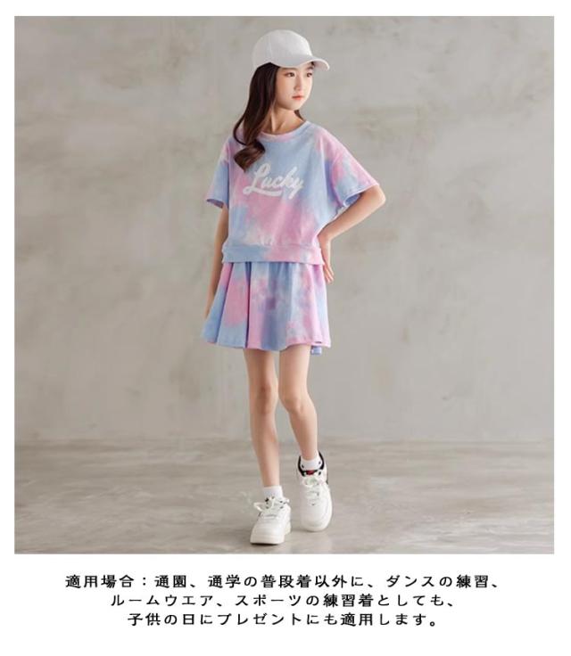韓国子供服 オシャレ 夏服 上下セット 2点セット キッズ Tシャツ 女の子 可愛い セットアップ タイダ染め 半袖 ショートパンツ タイダイ ピンク グリーン 子供服 ダンス衣装 舞台 団体服 チアリーダー 夏着 運動 通学
