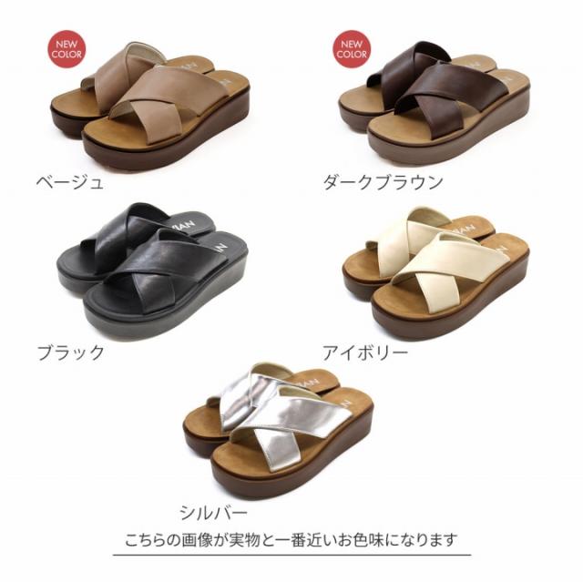 【MAX10%OFFクーポン】 厚底サンダル 厚底 コンフォート サンダル レディース つっかけ ローヒール フラット ブラック 黒 アイボリー 白 シルバー メタリック 旅行 レジャー リゾート V45109SM