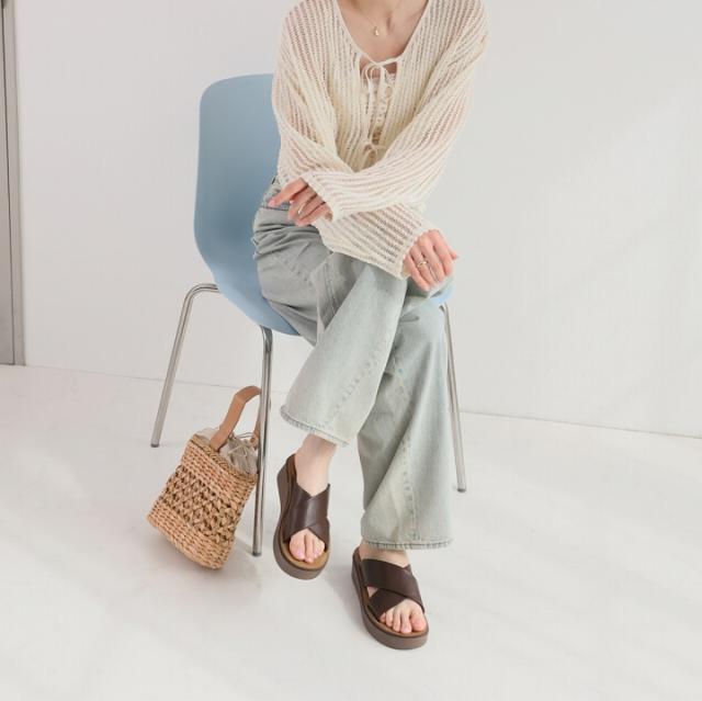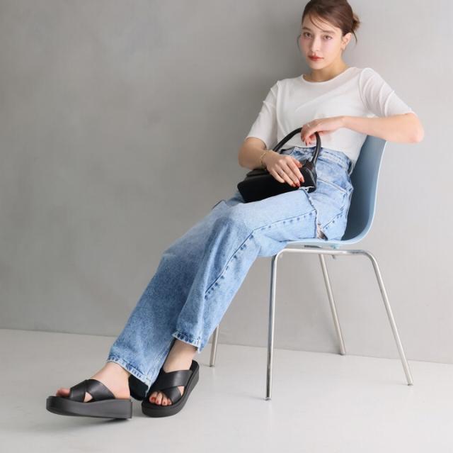 ・オープントゥで適度な肌見せと存在感のある厚底でスタイルアップした大人っぽい夏に映える足元に。