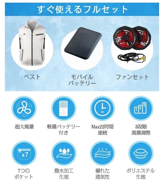 2025最新 空調ベスト 空調ウェア 空調作業服 フルセット 32800mAhバッテリー モバイルバッテリー 空調扇風服 3段階強風 22h連続送風 9枚羽根 19Vファンベスト エアコン服 UVカット UPF 50+