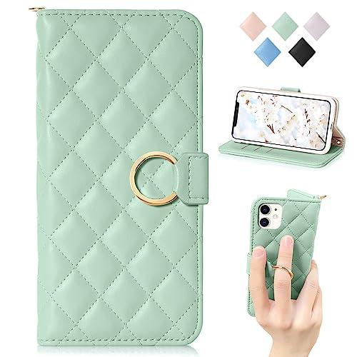 MAGICASE FOR iPhone 11 ケース手帳型 iphone11手帳型ケースリング付き iphone xr ケース 手帳型 女性 アイフォンxr ケース 手帳 スタンド機能 チェック柄 あいふぉん XRケース手帳 カバー 人気 アイフォン 11 手帳型ケース 肌触り良い高級PUレザー レディース おしゃれ 大人かわいい 軽い(iPhone 11/XR 6.1inch対応)グリーン