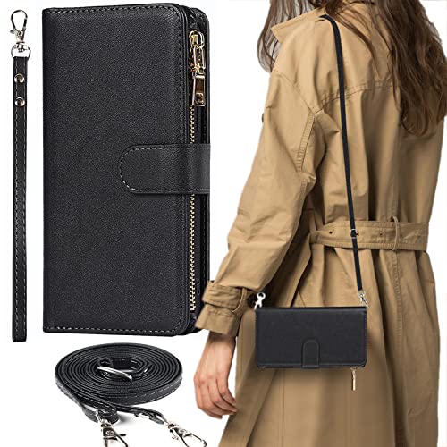 AQUOS R7 ケース 手帳型 ショルダー クロスボディ スマホショルダー カードケース AQUOSR7 SoftBank SH-52C docomo SIMフリー 全対応 シャープ アクオス R7 カバー SH52C ケース 手帳型 アクオスR7 スマホケース 携帯カバー AQUOSR7ケース case 適用 iCoverCase ストラップホール付き カード収納 バッグ マグネット 留め具 肩がけ 首掛け 斜め掛け カードケース ファスナー型 ストラップ付き カバー ショルダーケース クロスボディケース カード入れ スマホケース 携帯カバー ブラック