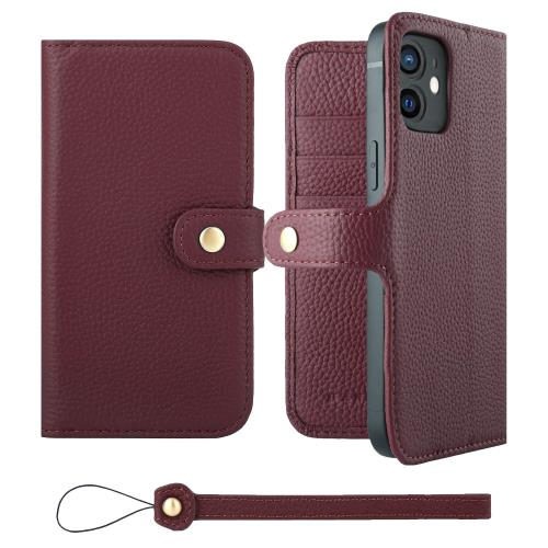 HANATORA iPhone12mini ケース 手帳型 本革 スマホケース スマホ スタンド ストラップ 付き シュリンクカーフレザー ギフト ベルトあり マグネットなし ワイン H0XB-12mini-Wine 父の日ギフト 父の日 ギフト 誕生日 人気商品 お父さん 服 30代 40代 50代 60代 70代