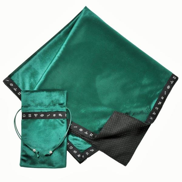 タロットクロス 星座柄 みどり色 グリーン 緑 滑り止め付き 大判 高級 ベルベット ポーチ付き 占い 占い師 鑑定 タロット タロット占い オラクルカード 送料無料