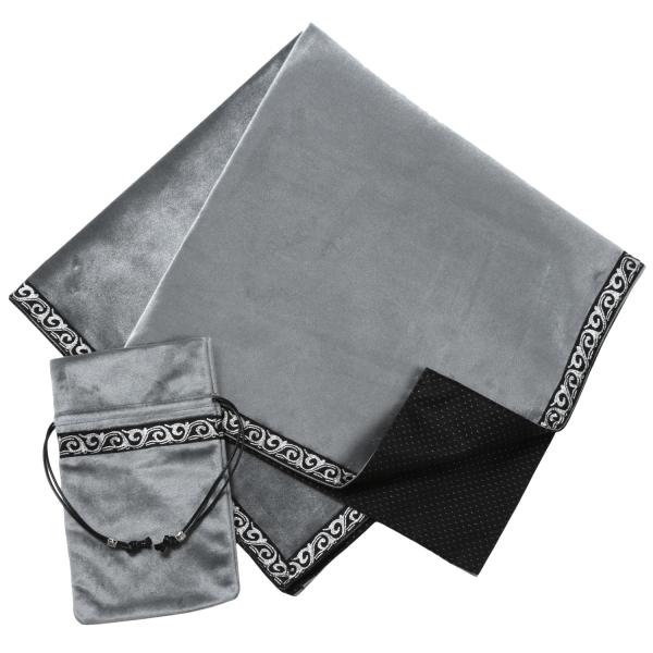 タロットクロス シルバー パワーストーンブレスレット 滑り止め付き 65×65cm 大判 銀色 高級 ベルベット ポーチ付き 占い 鑑定 タロットカード オラクル