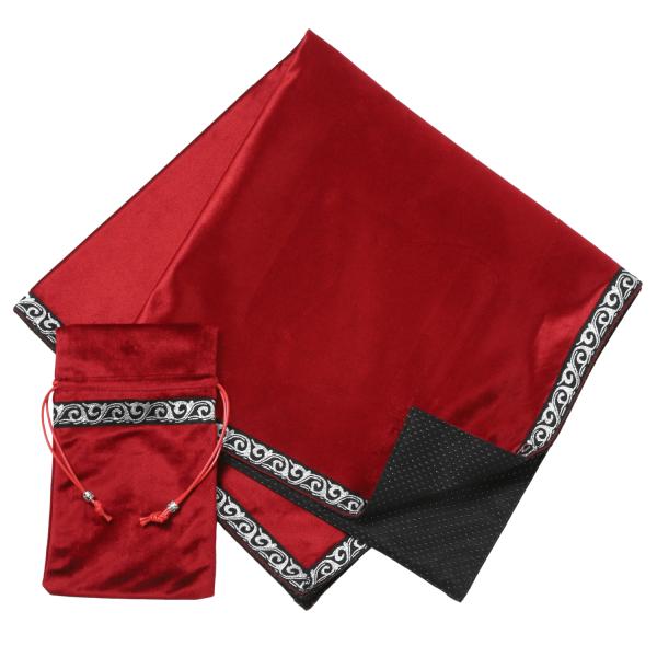 タロットクロス レッド パワーストーンブレスレット 滑り止め付き 65×65cm 大判 赤色 高級 ベルベット ポーチ付き 占い 鑑定 タロットカード オラクル