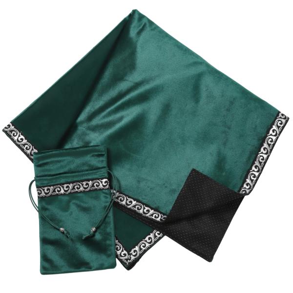 タロットクロス グリーン パワーストーンブレスレット 滑り止め付き 65×65cm 大判 緑色 高級 ベルベット ポーチ付き 占い 鑑定 タロットカード オラクル