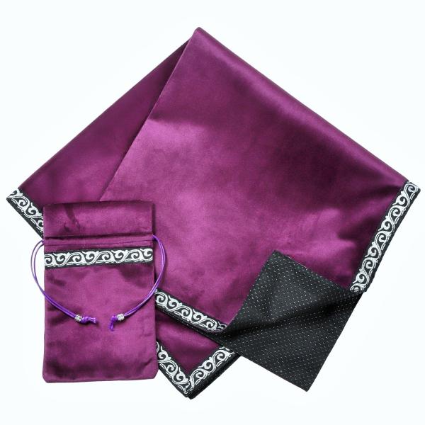 タロットクロス パープル パワーストーンブレスレット 滑り止め付き 65×65cm 大判 紫色 高級 ベルベット ポーチ付き 占い 鑑定 タロットカード オラクル