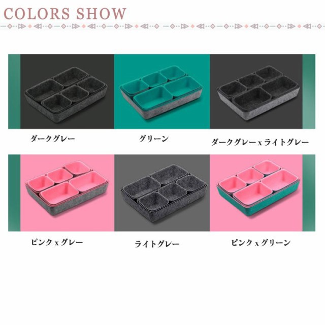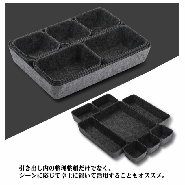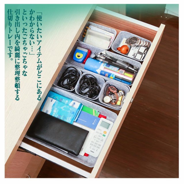 | 散乱しがちな引き出し内をスッキリ整頓!フェルト素材の仕切りトレー 8個セット 「使いたいアイテムがどこにあるかわからない…」といったごちゃごちゃな引き出し内を綺麗に整理整頓する仕切りトレーです。 文房具はもちろん、化粧品やアクセサリーなど様々なアイテムの保管に◎ 手触りが良いフェルト生地を採用しています。 引き出し内の整理整頓だけでなく、シーンに応じて卓上に置いて活用することもオススメ。 ふわっとした可愛い色合いで卓上に華やかさがプラスします。 | |