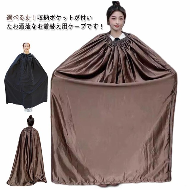 | 選べる丈!収納ポケットが付いたお酒落なお着替え用ケープです! 災害時の簡易更衣室代わりに防災グッツとしても役立ちます。 首元がゴム仕様になっているのと生地面積も広いのですぐに着替えやすい。 男女兼用タイプで、お子様から大人まで使用可能です。 社交ダンス競技会場の限られたスペースで、さっとお着替えができます。 | |