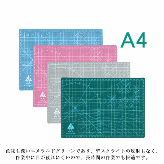 | A3 A4 A5 厚さ3mm 【両面印刷】:方眼、角度線、R曲線、円ラインなど図形を印刷した表面と無地裏面の両面とも使えるですリバーシブルタイプ 工作マット。 【スタイル】: 色味も深いエメラルドグリーンであり、デスクライトの反射もなく、 作業中に目が疲れにくいので、長時間の作業でも快適です。 【素材】: 材料に使われているオレフィン系樹脂には再生樹脂を採用ので、焼却しても塩化物ガスが発生しない。地球環境に優しい製品となっていますカッター台 。 【適用範囲】: カッティングマット手芸作業や職場で切り絵制作に使用、模型工作用に、色塗りなど大活躍の物です。床や机が傷つくのを気にしなくて済み、ご安心いただけます。また、光学式マウスのマウスパッドとして使用する。小学校、保育園のこどもに粘土板としてにもいいです | |