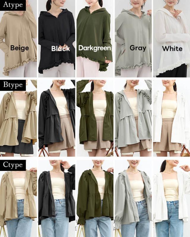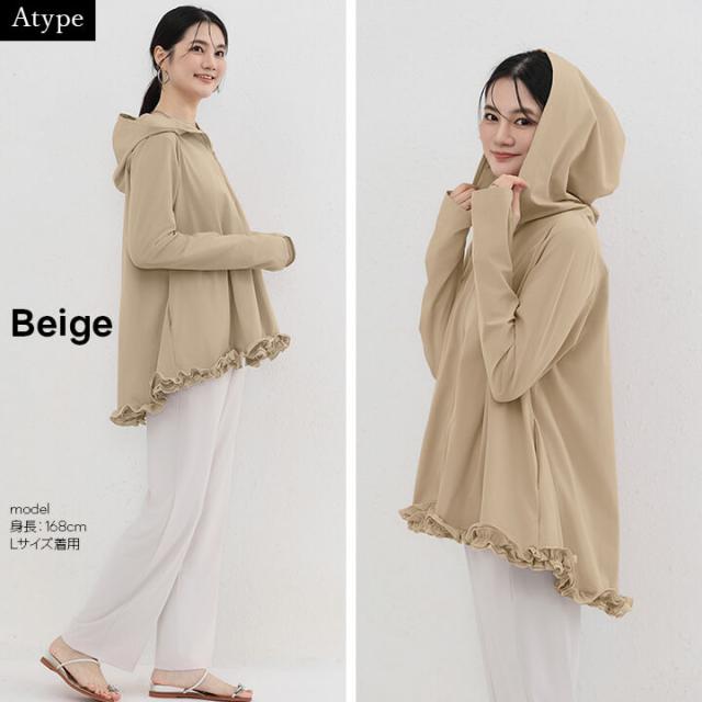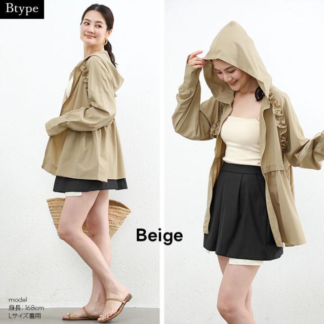 ■取扱商品の特徴: ラッシュガード レディース 紫外線対策 夏 春 UVカット 日焼け対策 ラッシュパーカー 涼しい フリル ギャザー 可愛い パーカー 指穴付き フィンガーホール付き フードあり ドルマンシルエット ポケット付き 長袖 普段着 水着 ビーチ 海 サーフィン アウトドア フィットネス 散歩 スポーツウェア 無地 シンプル ベージュ 肌色 ブラック 黒 ダークグリーン 深緑 グレー 灰色 ホワイト 白 女性 M L XL 9号 11号 20代 30代 1代 10代 yc1306b