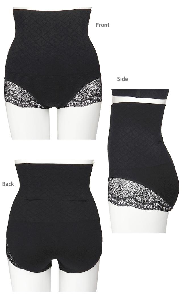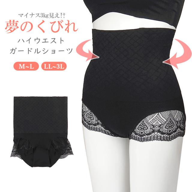 【メール便送料無料】【大きいサイズあり】ハイウエスト ガードルショーツ 単品 レディース ブラック M〜L LL〜3L ES-1803 深履き お腹 ウエスト くびれ 補正 下着 パンツ インナー アンダーショーツ ストレッチ ボーン レース メッシュ 黒 2955