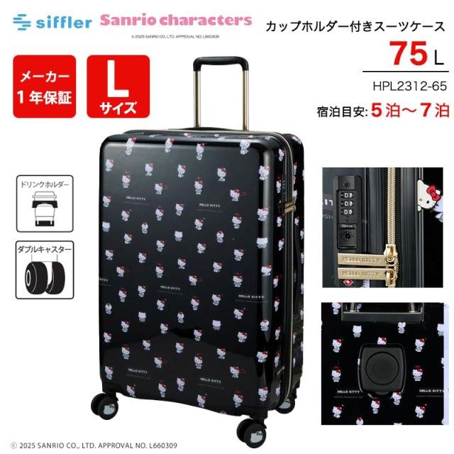 シフレ サンリオキャラクターズ スーツケース Lサイズ 75L HPL2312-65 カップホルダー付き 無料受託手荷物 キャリーケース siffler