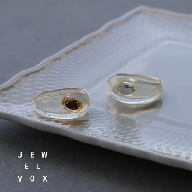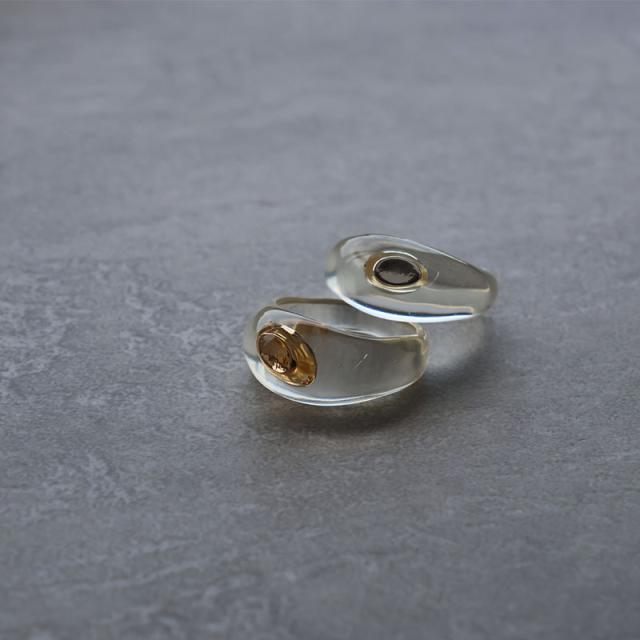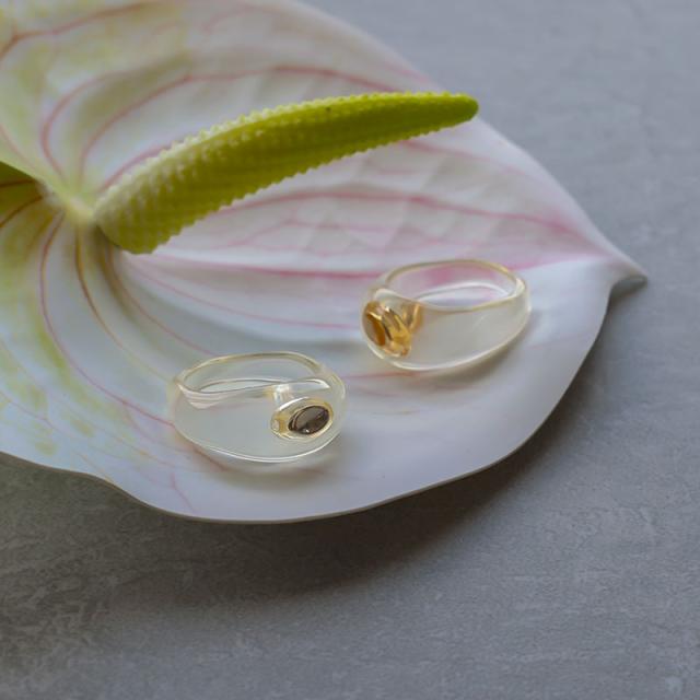 涼し気なクリアリングに、オーバルモチーフを埋め込んだデザインが特徴的なリングです。