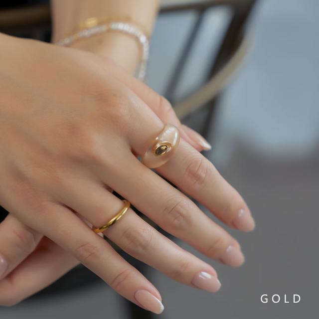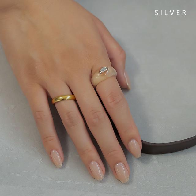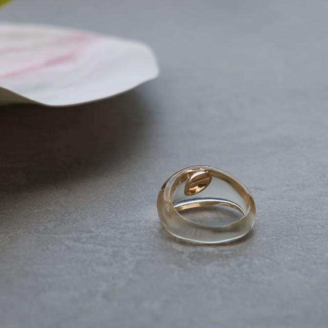リング レディース ニッケルフリー 金属アレルギー アクリル樹脂 ワンサイズ 13号 クリア オーバル 楕円 モチーフ 大ぶり ニュアンス ゴールド シルバー 夏 デイリー カジュアル シンプル