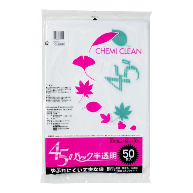 | 検索用文言 | [ケミカルジャパン]45Lパック半透明 45L 50枚 (ゴミ袋 ポリ袋 半透明 厚口 横65cm 縦80cm) |