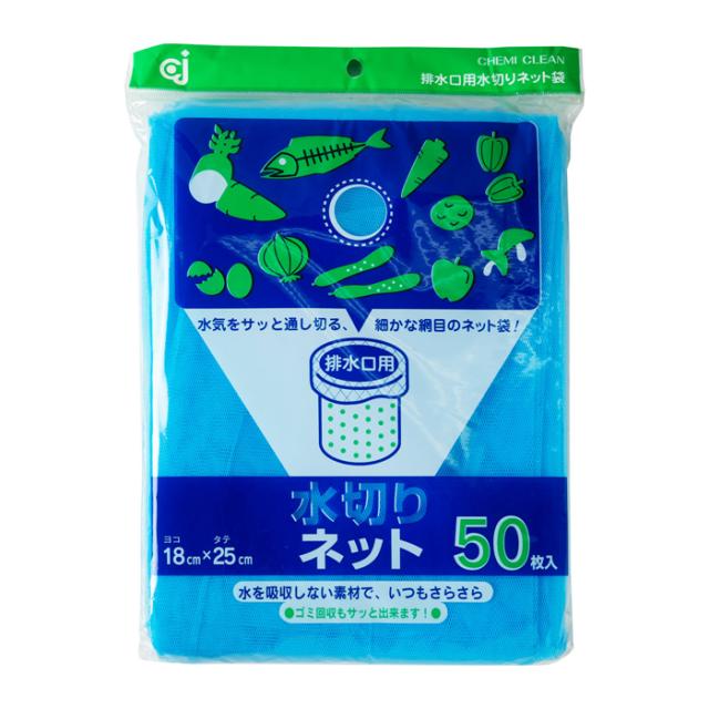 | 検索用文言 | [ケミカルジャパン]水切りネット 50枚入り(排水口 キッチン シンク 生ゴミ 18×25cm) |
