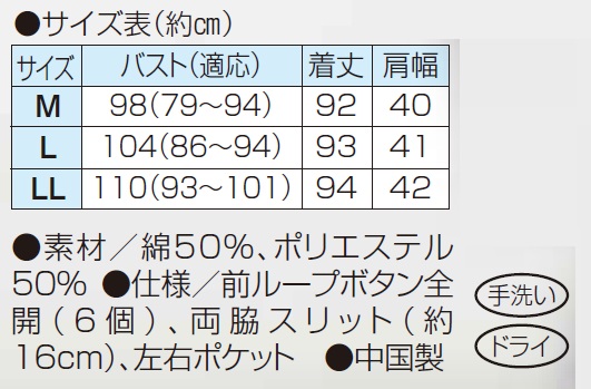 ●仕様/前ループボタン全開(6個)、両脇スリット(約16cm)、左右ポケット