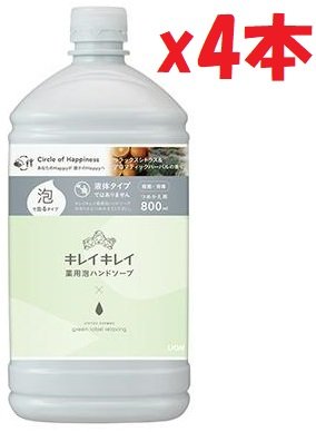 4本セット キレイキレイ 薬用 泡ハンドソープ Me グリーンレーベル リラクシングコラボ リラックスシトラス&アロマティックハーバルの香り 本体800ml 2F-G