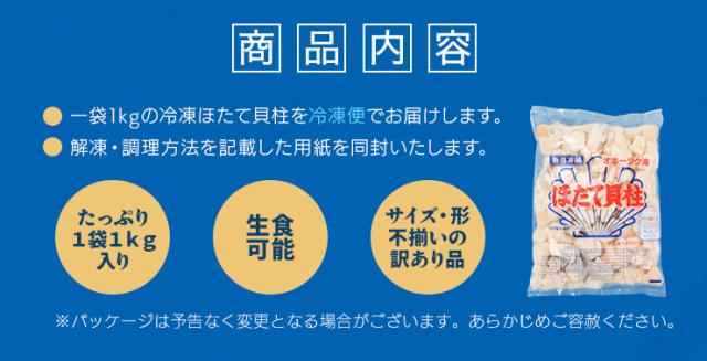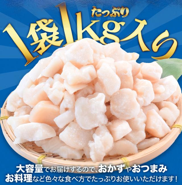 ほたて 貝柱 不揃い品 生食用 2kg(1kg×2袋) 北海道産 大容量 冷凍 帆立 海鮮丼
