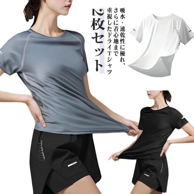 tシャツ Tシャツ インナー 2枚セット 大きいサイズ 2枚セット ジム トレーニング ドライ 速乾性 速乾 半袖 白tシャツ ティシャツ 半袖tシャツ メンズ ティーシャツ ヨガ 無地 マラソン ランニング 無地 カットソー インナー トップス 吸水 吸汗