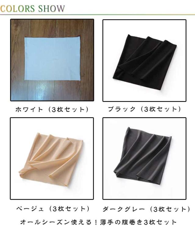 | オールシーズン使える!薄手の腹巻き3枚セット 体の中心部を温めることにより、消化器の不調や手足の冷えなどが緩和されるといった声も多くございます。 オールシーズンにお使いいただけます。薄手の生地ですのでお洋服の下に着ていただいても響きにくいのも特徴です。 日中はもちろん、お風呂上りの冷え対策におすすめ!夜おやすみの時に着用すれば朝までぐっすり眠れたと喜ばれています。 | |