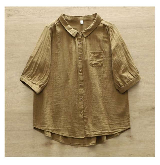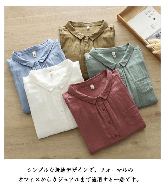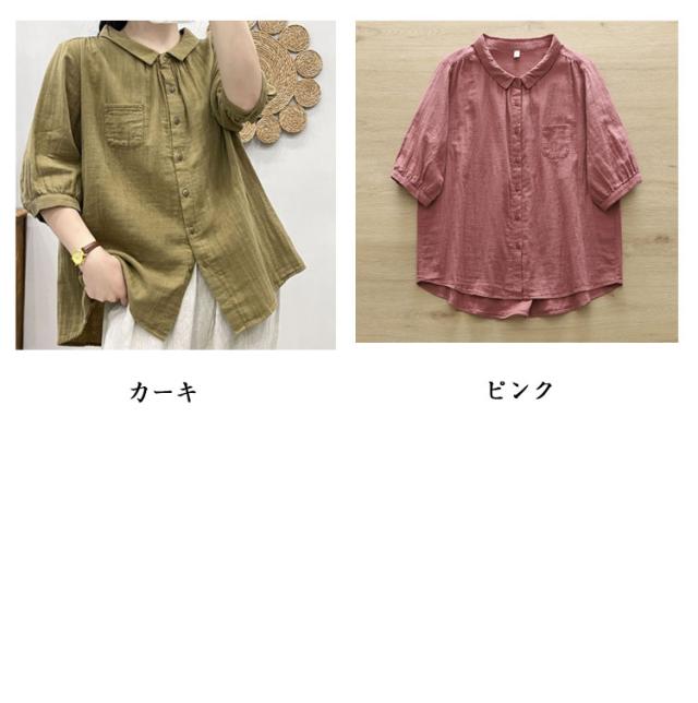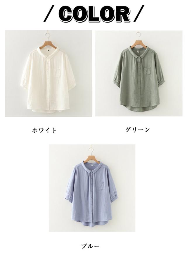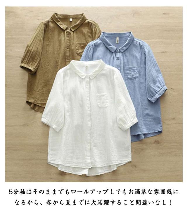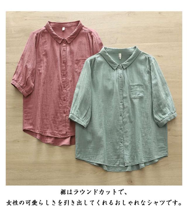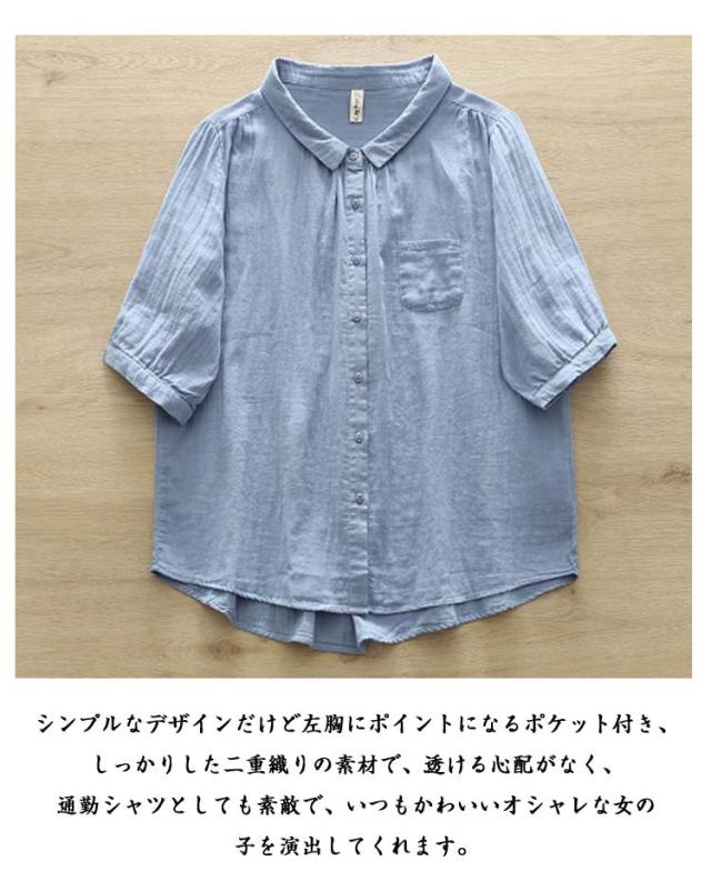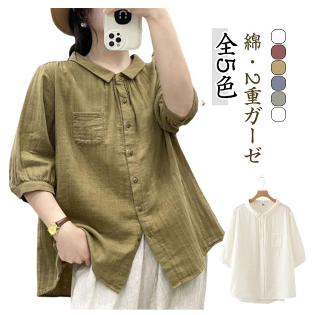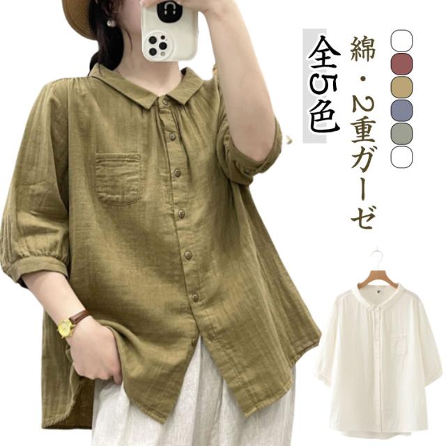 襟付き 五分袖シャツ 5分袖 5分袖 シンプル シャツブラウス ブラウス 七分袖 レディース シャツ 綿 ゆったり 2重ガーゼ トップス 7分袖 春 夏 コットン カジュアル シャツ 半袖 夏服 体型カバー 着痩せ 無地 おしゃれ