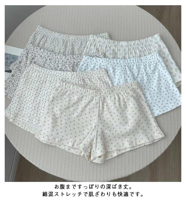 かわいい ストレッチ トランクス 綿混 くつろぎ フリーサイズ ショーツ 花柄 総柄 ルームウェア ボトムス ショーツ 女性 下着 レディース コットン