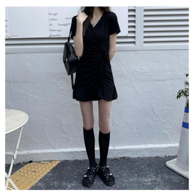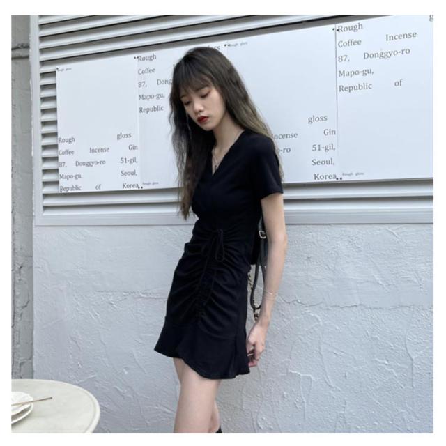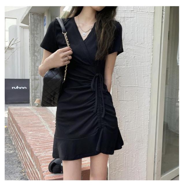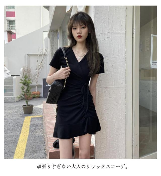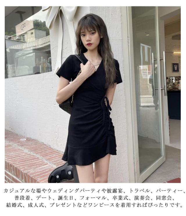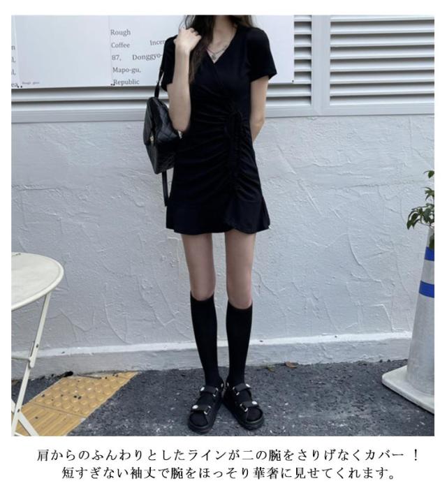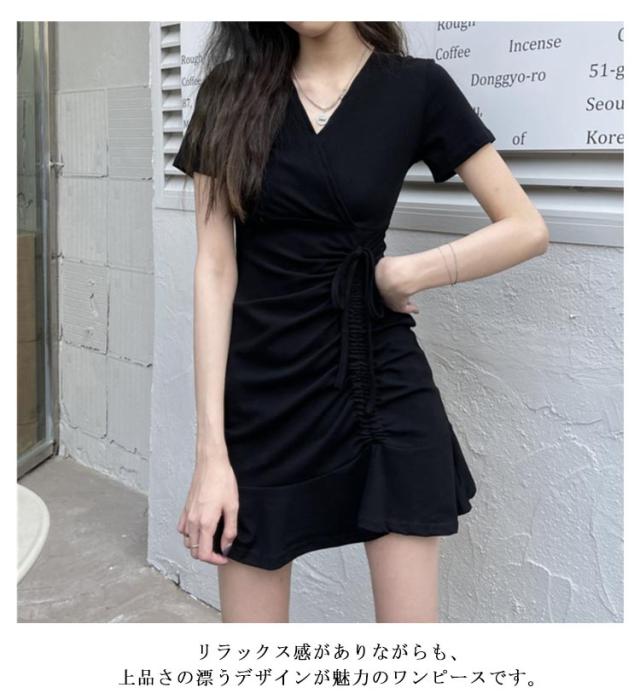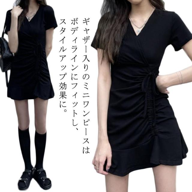 半袖 Vネック フィット感 タイトワンピース タイトワンピース ギャザ入り ワンピース ミニドレス レディース フレア裾 ナイトドレス ショート丈 スリム セクシー 二次会 パーティードレス お呼ばれ 20代 30代 40代