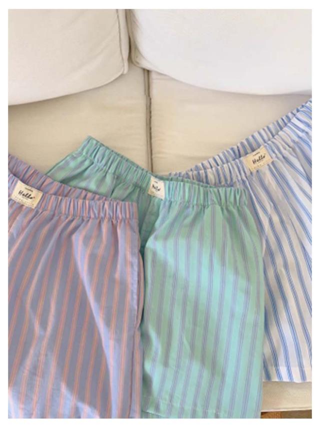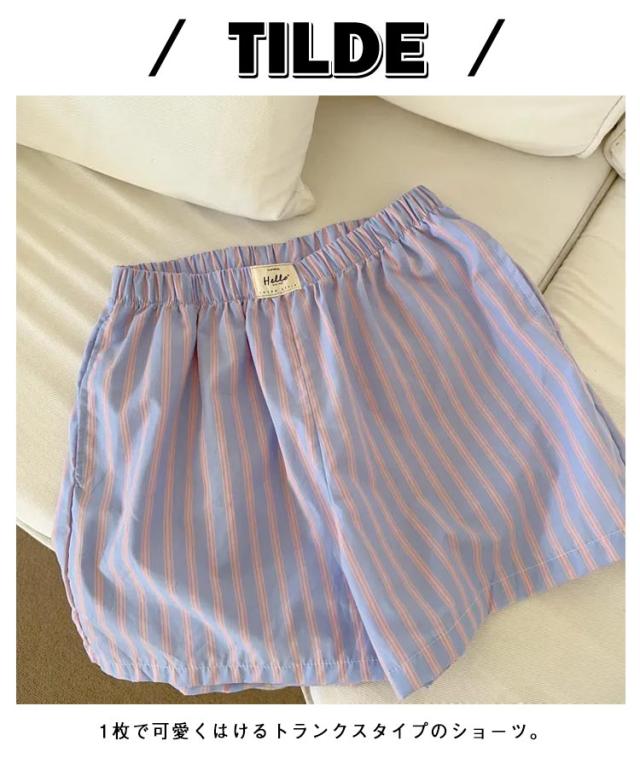トランクス ストレッチ かわいい シンプル ショーツ ストライプ柄 ポケット付き くつろぎ ショーツ ルームウェア ボトムス ショーツ 女性 下着 レディース 快適 ルームウェア